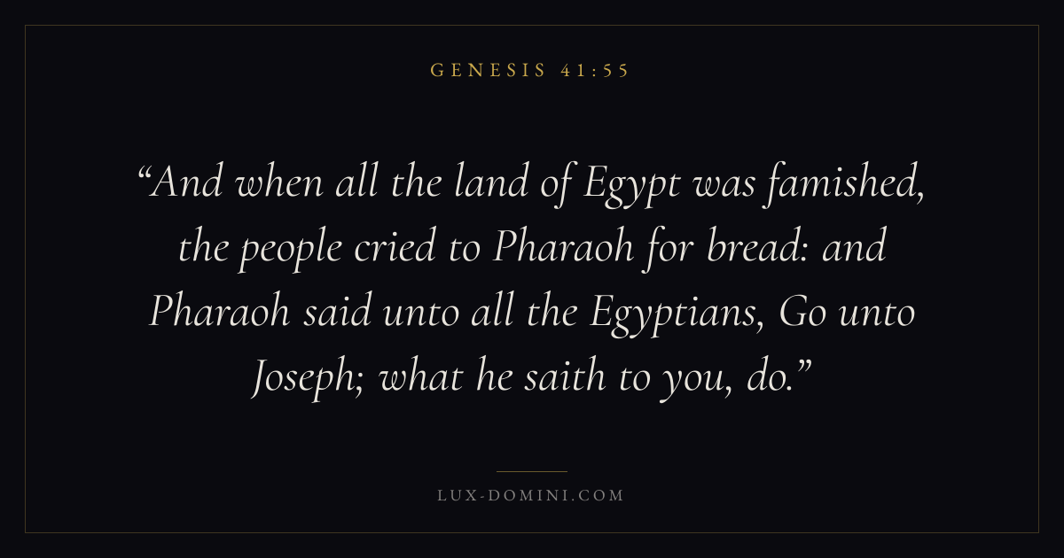 And when all the land of Egypt was famished, the people cried to Pharaoh for bread: and Pharaoh said unto all the Egyptians, Go unto Joseph; what he saith to you, do.