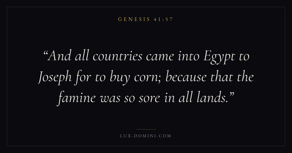 And all countries came into Egypt to Joseph for to buy corn; because that the famine was so sore in all lands.