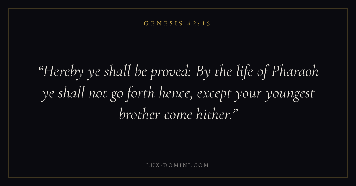Hereby ye shall be proved: By the life of Pharaoh ye shall not go forth hence, except your youngest brother come hither.