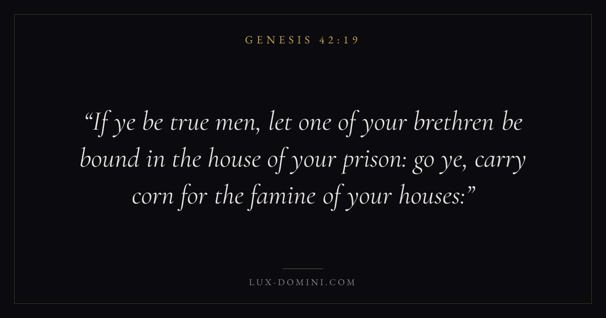 If ye be true men, let one of your brethren be bound in the house of your prison: go ye, carry corn for the famine of your houses:
