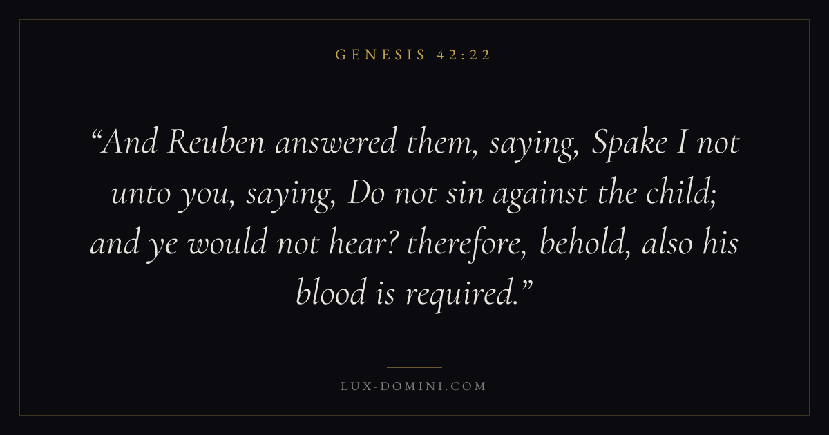 And Reuben answered them, saying, Spake I not unto you, saying, Do not sin against the child; and ye would not hear? therefore, behold, also his blood is required.