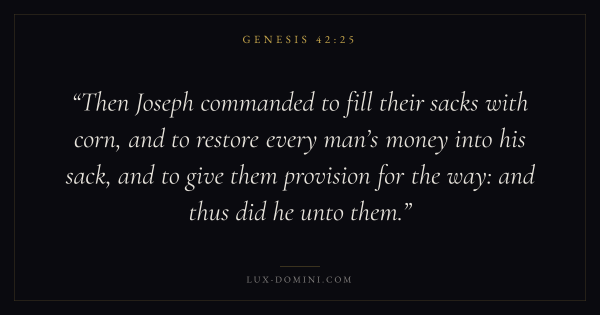 Then Joseph commanded to fill their sacks with corn, and to restore every man’s money into his sack, and to give them provision for the way: and thus did he unto them.