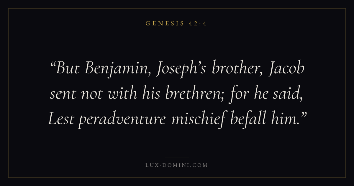 But Benjamin, Joseph’s brother, Jacob sent not with his brethren; for he said, Lest peradventure mischief befall him.