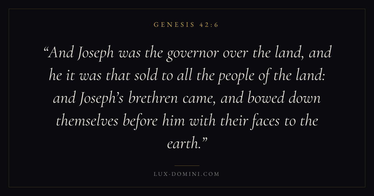 And Joseph was the governor over the land, and he it was that sold to all the people of the land: and Joseph’s brethren came, and bowed down themselves before him with their faces to the earth.