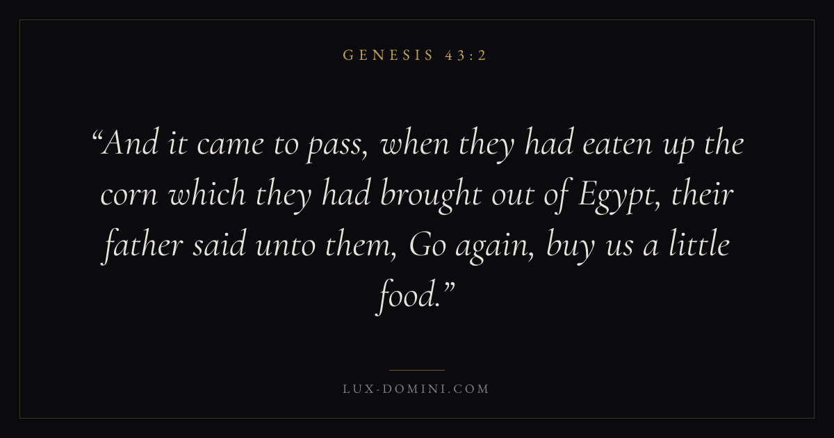 And it came to pass, when they had eaten up the corn which they had brought out of Egypt, their father said unto them, Go again, buy us a little food.