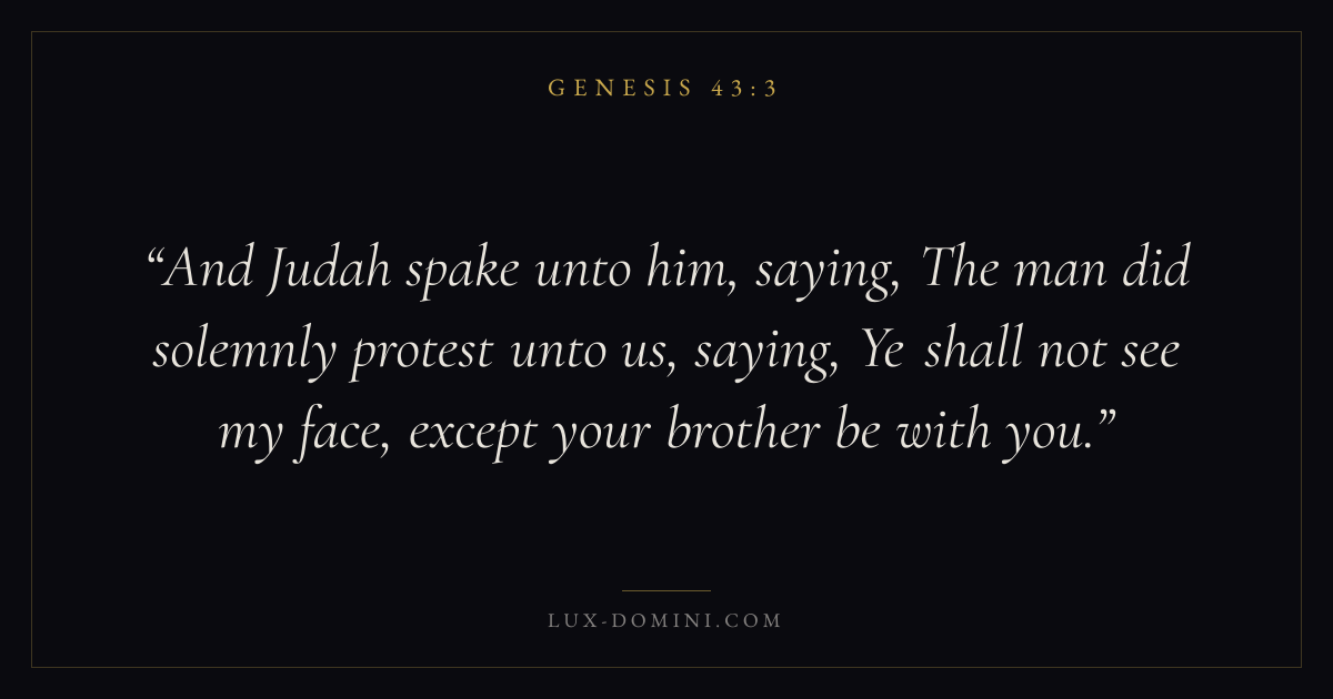 And Judah spake unto him, saying, The man did solemnly protest unto us, saying, Ye shall not see my face, except your brother be with you.