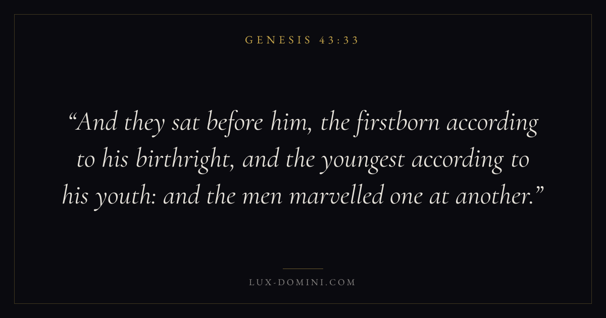 And they sat before him, the firstborn according to his birthright, and the youngest according to his youth: and the men marvelled one at another.