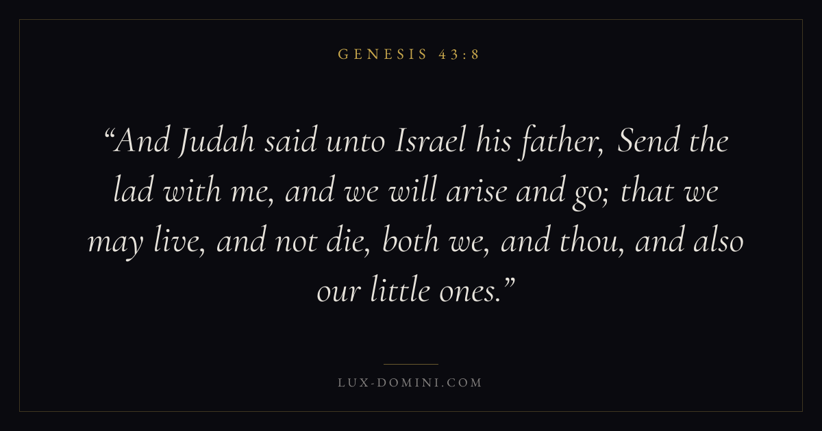 And Judah said unto Israel his father, Send the lad with me, and we will arise and go; that we may live, and not die, both we, and thou, and also our little ones.