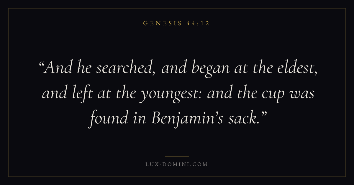 And he searched, and began at the eldest, and left at the youngest: and the cup was found in Benjamin’s sack.