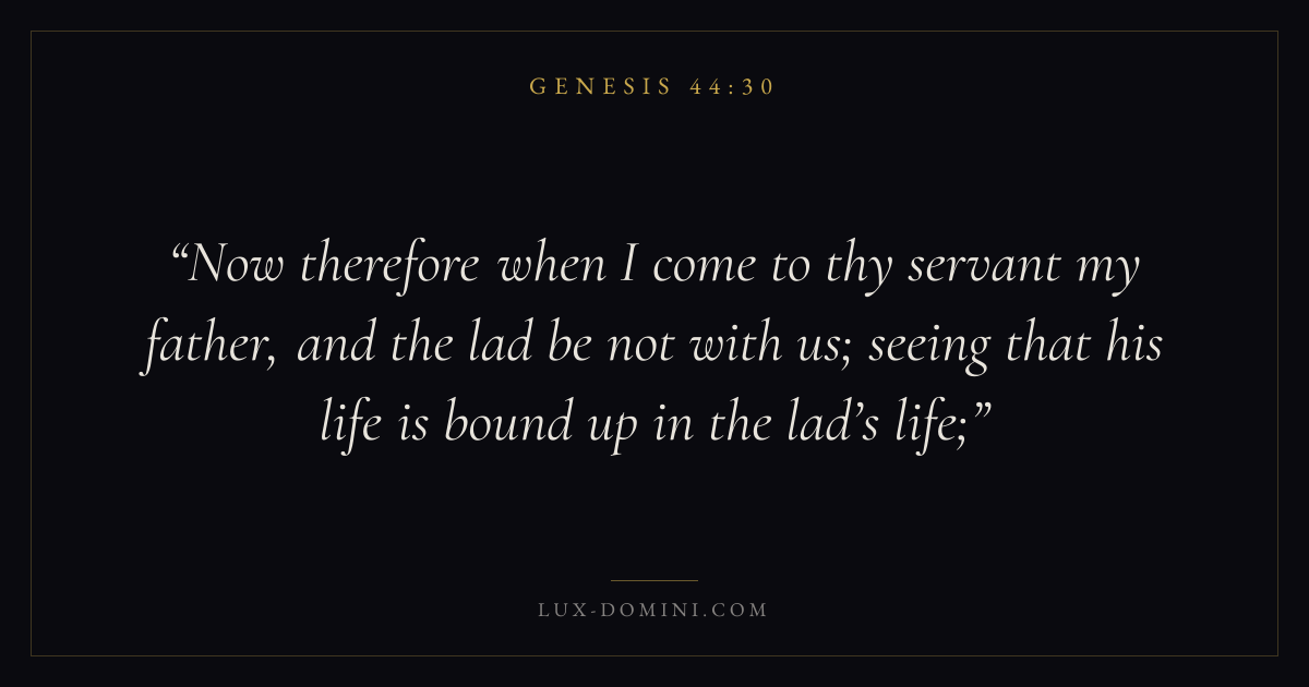 Now therefore when I come to thy servant my father, and the lad be not with us; seeing that his life is bound up in the lad’s life;