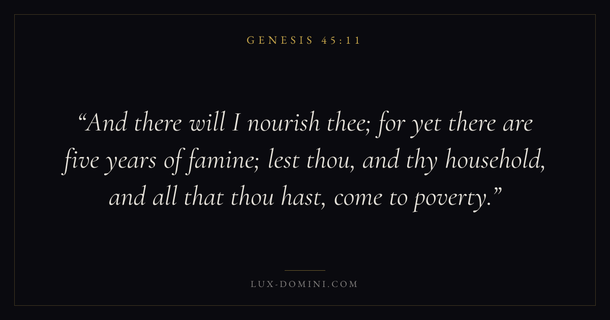 And there will I nourish thee; for yet there are five years of famine; lest thou, and thy household, and all that thou hast, come to poverty.