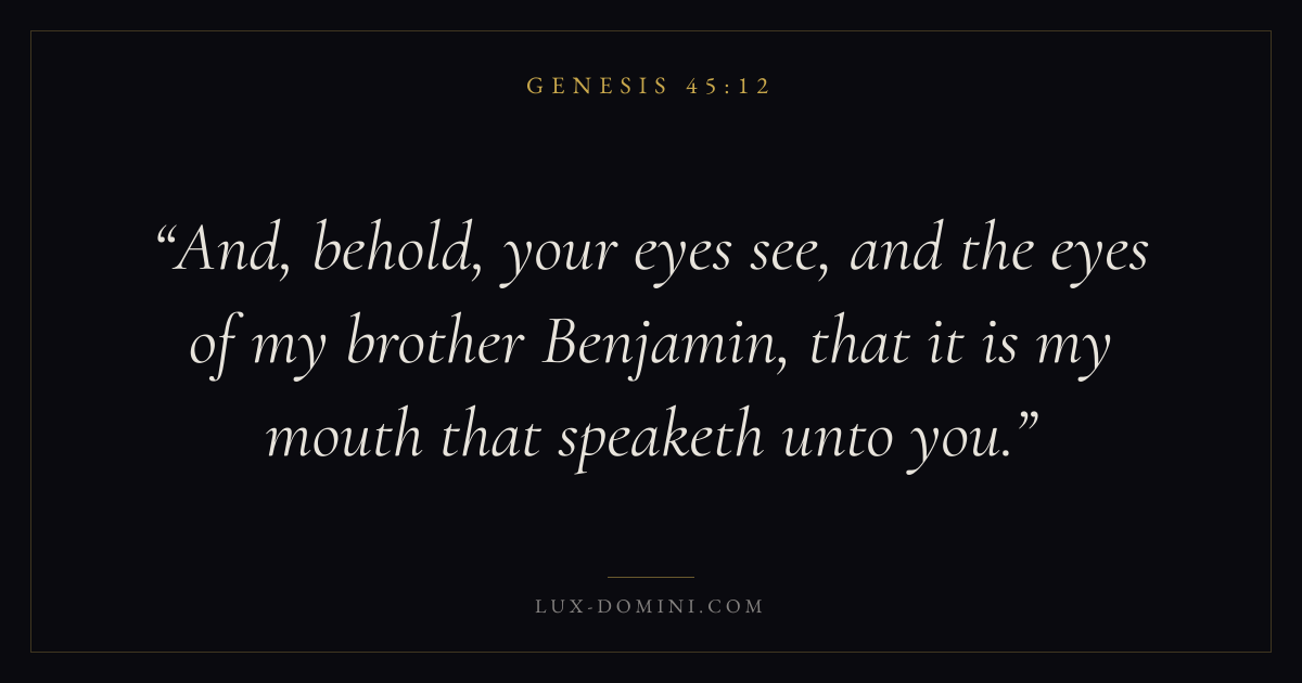 And, behold, your eyes see, and the eyes of my brother Benjamin, that it is my mouth that speaketh unto you.