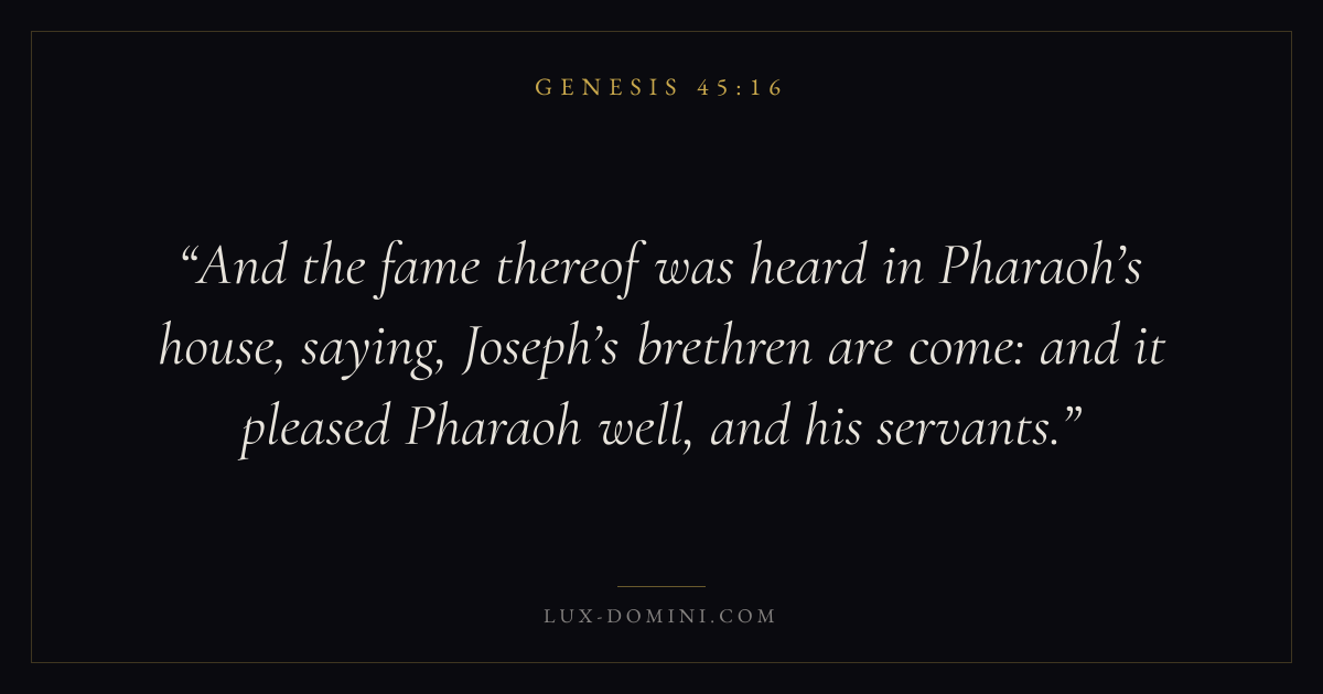 And the fame thereof was heard in Pharaoh’s house, saying, Joseph’s brethren are come: and it pleased Pharaoh well, and his servants.
