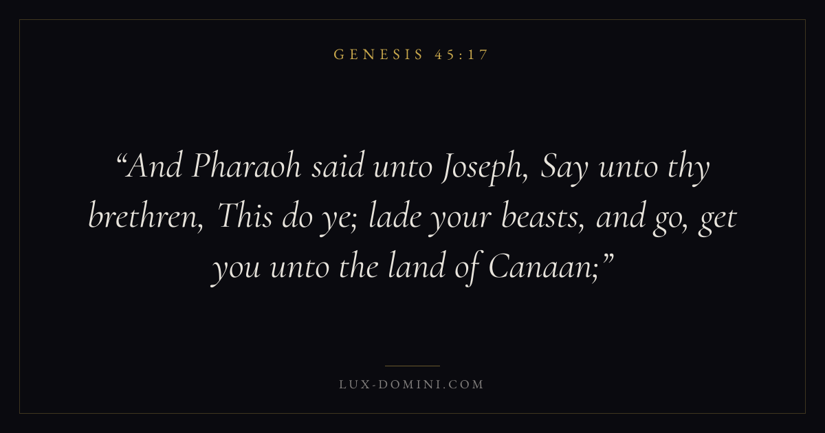 And Pharaoh said unto Joseph, Say unto thy brethren, This do ye; lade your beasts, and go, get you unto the land of Canaan;