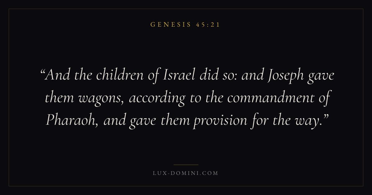 And the children of Israel did so: and Joseph gave them wagons, according to the commandment of Pharaoh, and gave them provision for the way.