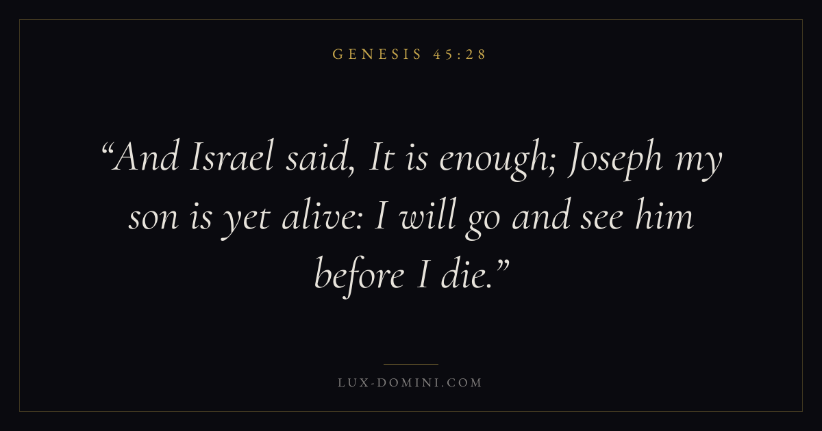 And Israel said, It is enough; Joseph my son is yet alive: I will go and see him before I die.
