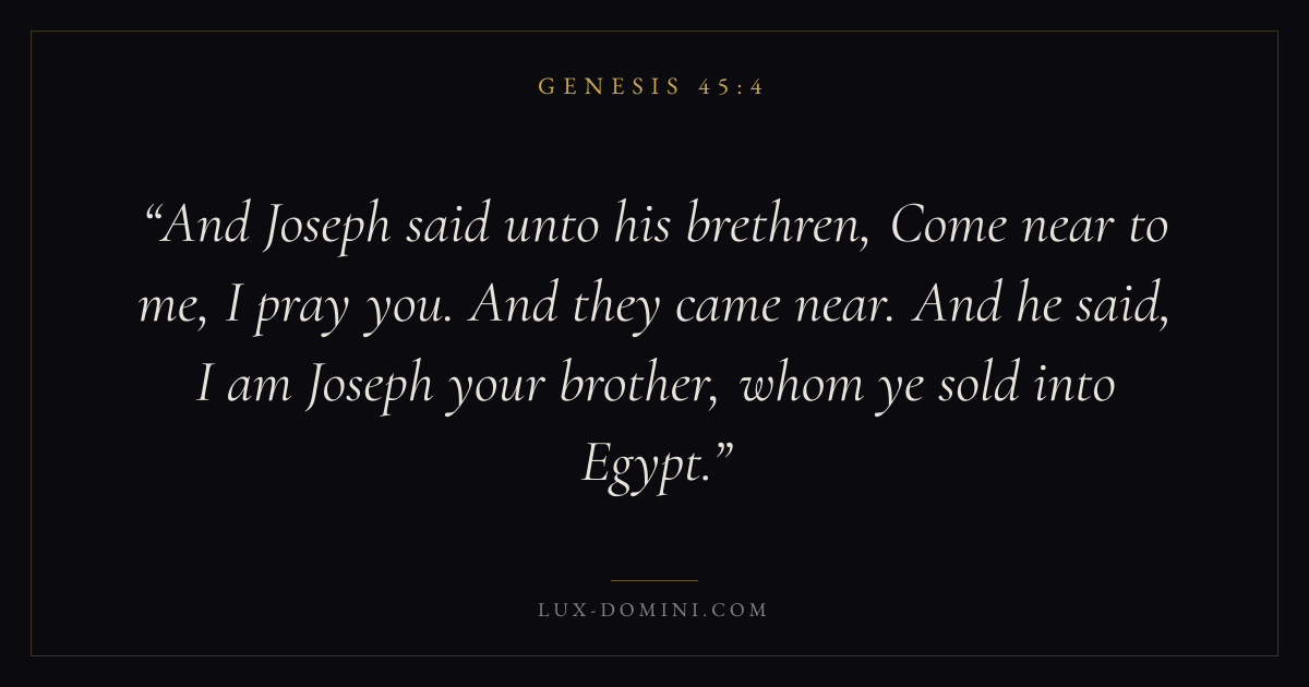 And Joseph said unto his brethren, Come near to me, I pray you. And they came near. And he said, I am Joseph your brother, whom ye sold into Egypt.