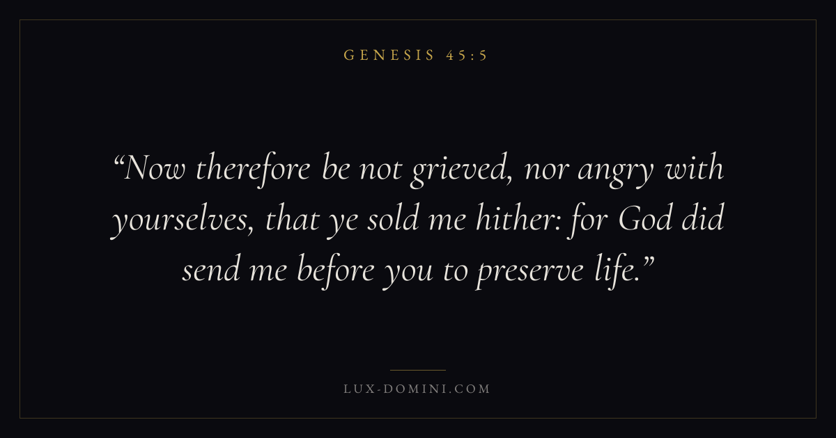 Now therefore be not grieved, nor angry with yourselves, that ye sold me hither: for God did send me before you to preserve life.