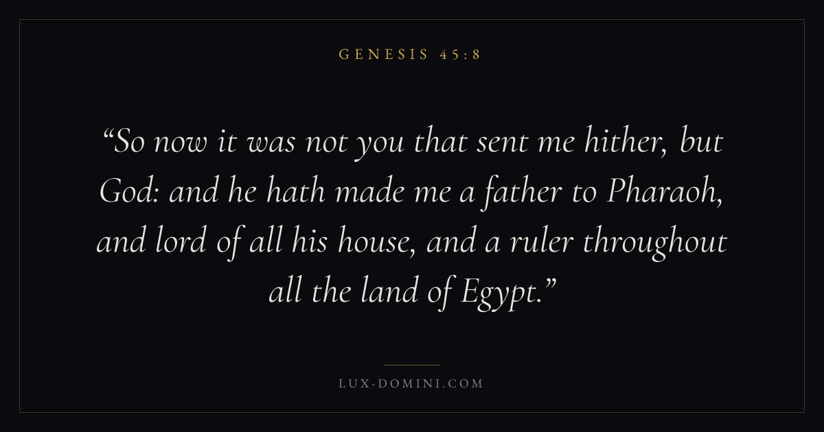 So now it was not you that sent me hither, but God: and he hath made me a father to Pharaoh, and lord of all his house, and a ruler throughout all the land of Egypt.