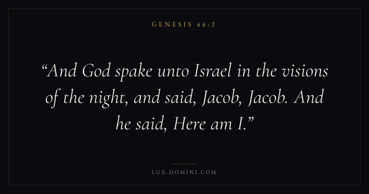 And God spake unto Israel in the visions of the night, and said, Jacob, Jacob. And he said, Here am I.