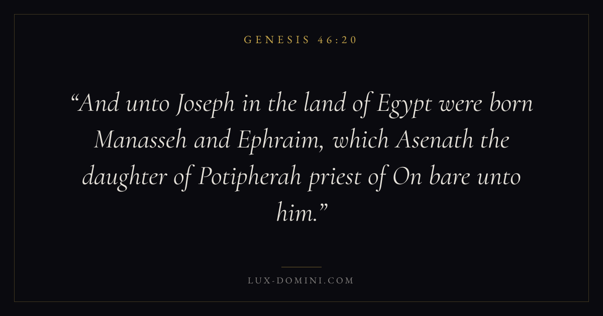 And unto Joseph in the land of Egypt were born Manasseh and Ephraim, which Asenath the daughter of Potipherah priest of On bare unto him.