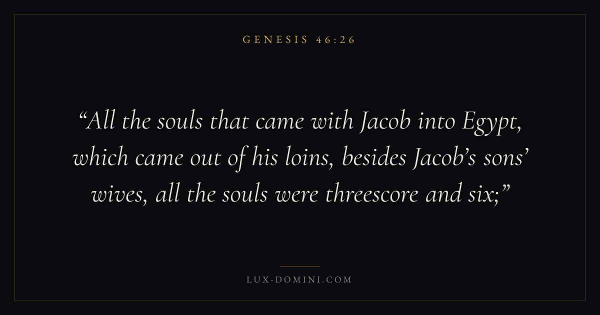All the souls that came with Jacob into Egypt, which came out of his loins, besides Jacob’s sons’ wives, all the souls were threescore and six;