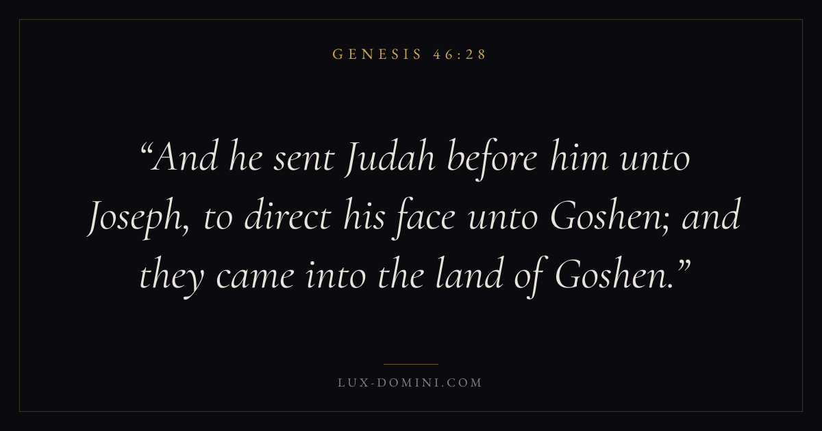 And he sent Judah before him unto Joseph, to direct his face unto Goshen; and they came into the land of Goshen.