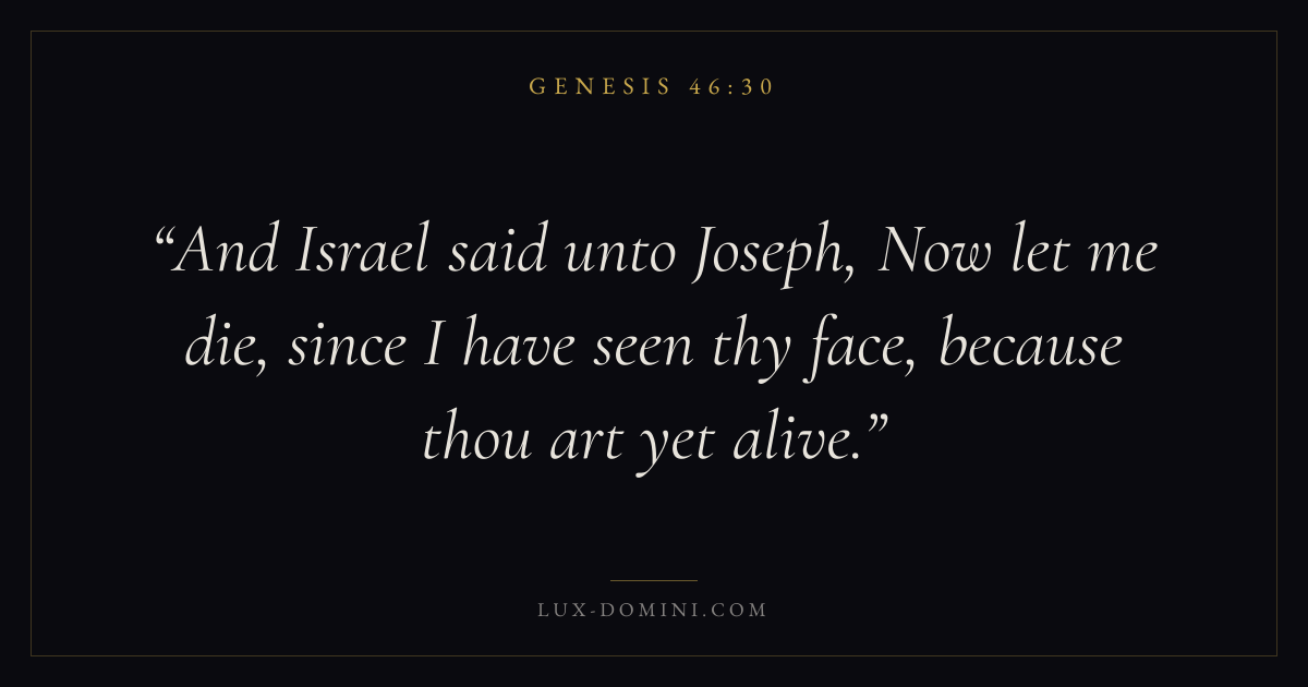 And Israel said unto Joseph, Now let me die, since I have seen thy face, because thou art yet alive.