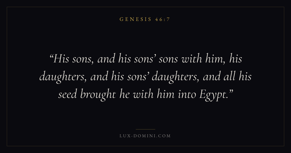 His sons, and his sons’ sons with him, his daughters, and his sons’ daughters, and all his seed brought he with him into Egypt.
