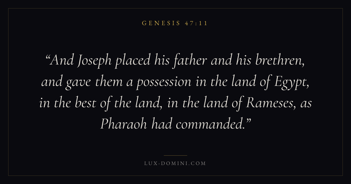 And Joseph placed his father and his brethren, and gave them a possession in the land of Egypt, in the best of the land, in the land of Rameses, as Pharaoh had commanded.