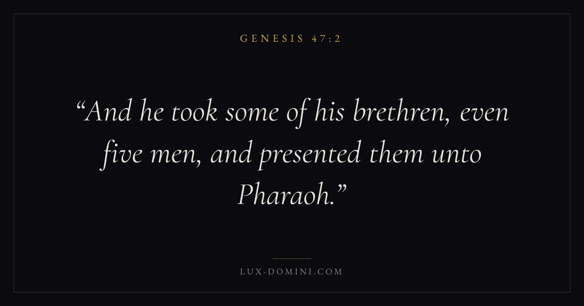 And he took some of his brethren, even five men, and presented them unto Pharaoh.