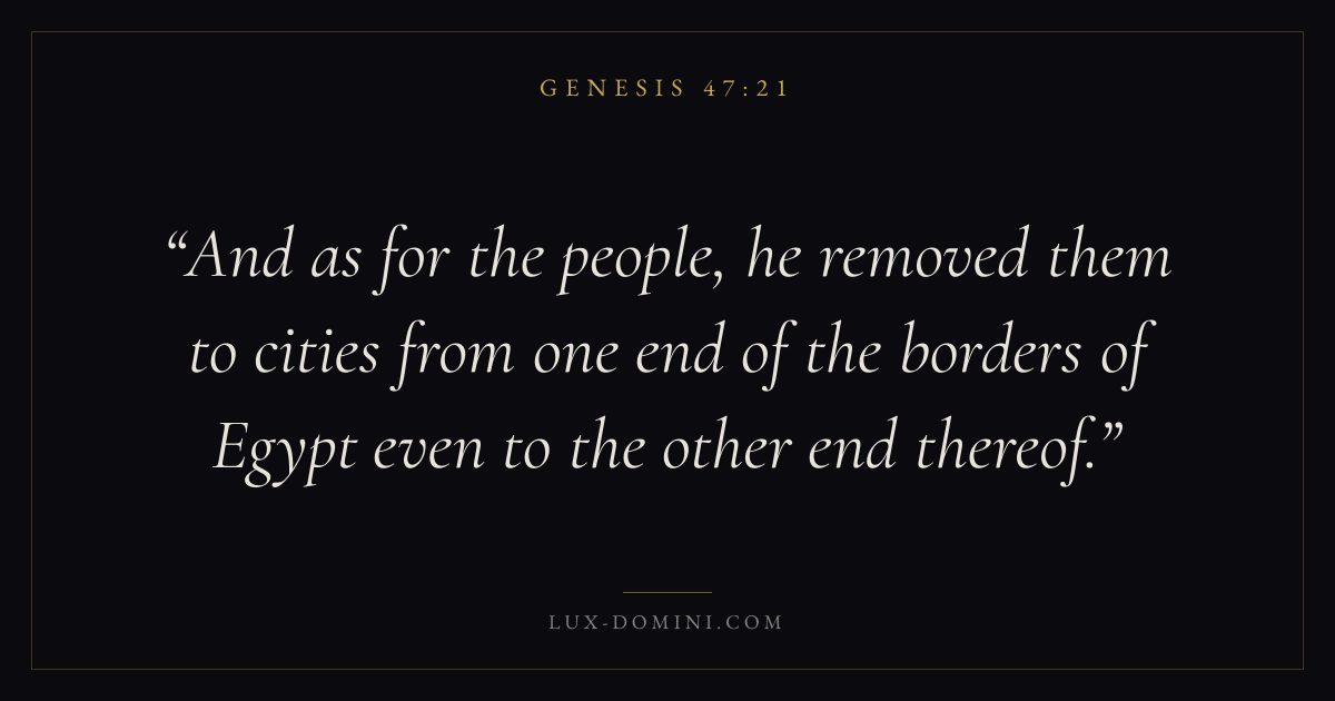 And as for the people, he removed them to cities from one end of the borders of Egypt even to the other end thereof.