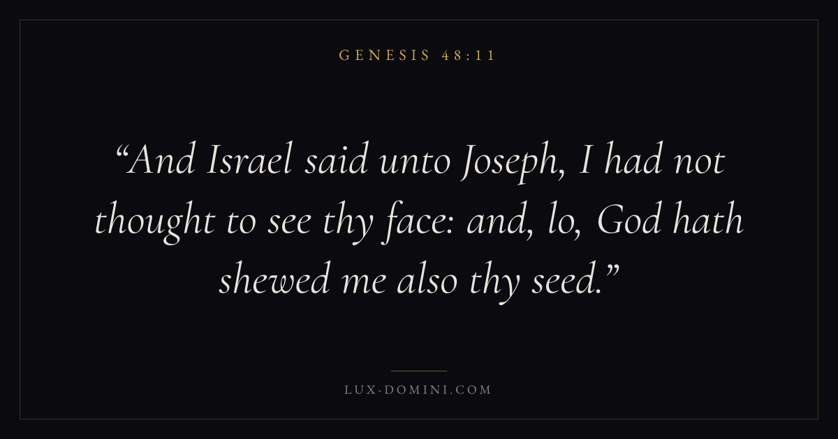 And Israel said unto Joseph, I had not thought to see thy face: and, lo, God hath shewed me also thy seed.