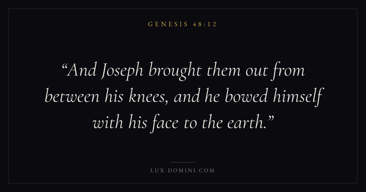 And Joseph brought them out from between his knees, and he bowed himself with his face to the earth.