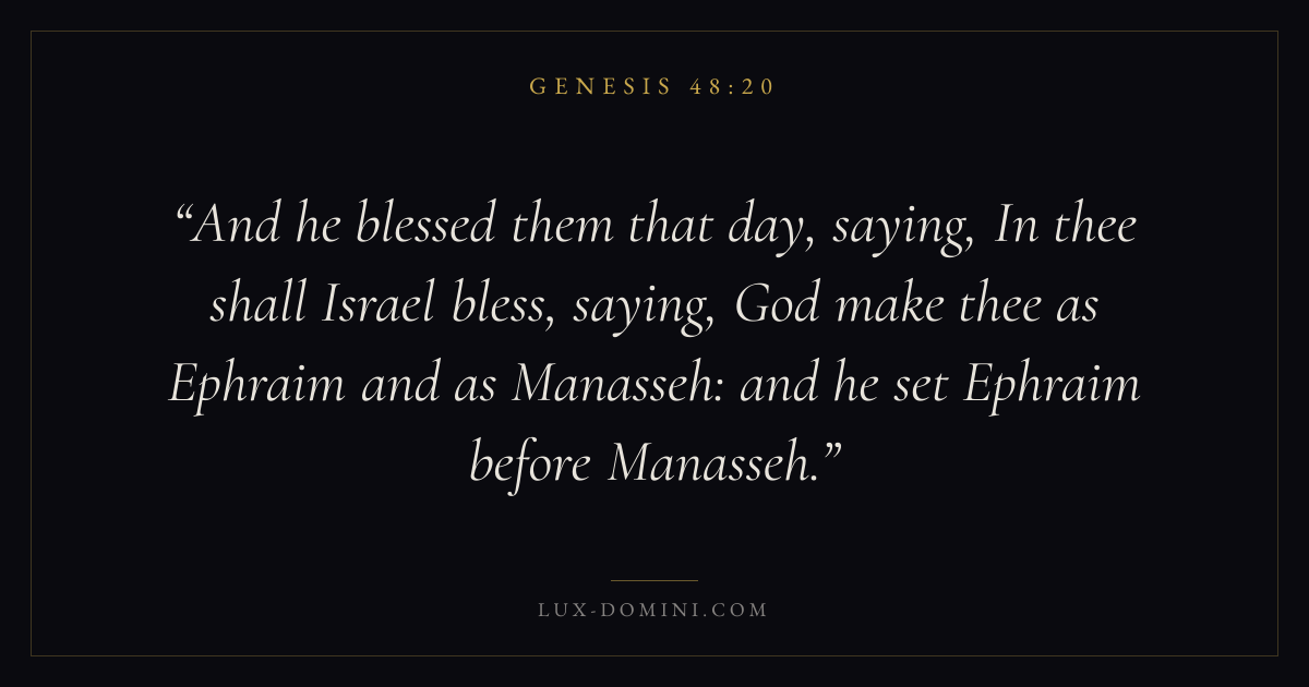 And he blessed them that day, saying, In thee shall Israel bless, saying, God make thee as Ephraim and as Manasseh: and he set Ephraim before Manasseh.