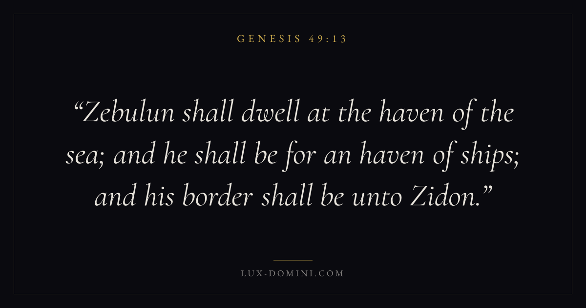 Zebulun shall dwell at the haven of the sea; and he shall be for an haven of ships; and his border shall be unto Zidon.