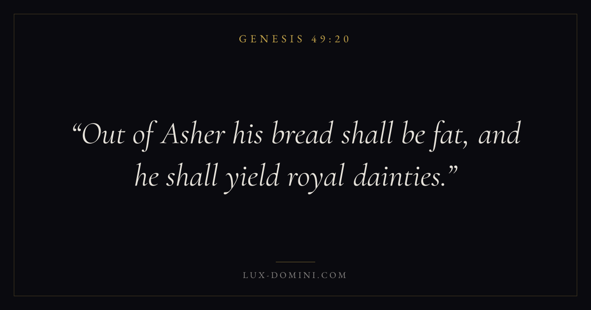 Out of Asher his bread shall be fat, and he shall yield royal dainties.