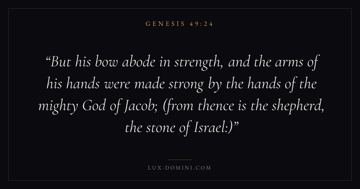 But his bow abode in strength, and the arms of his hands were made strong by the hands of the mighty God of Jacob; (from thence is the shepherd, the stone of Israel:)