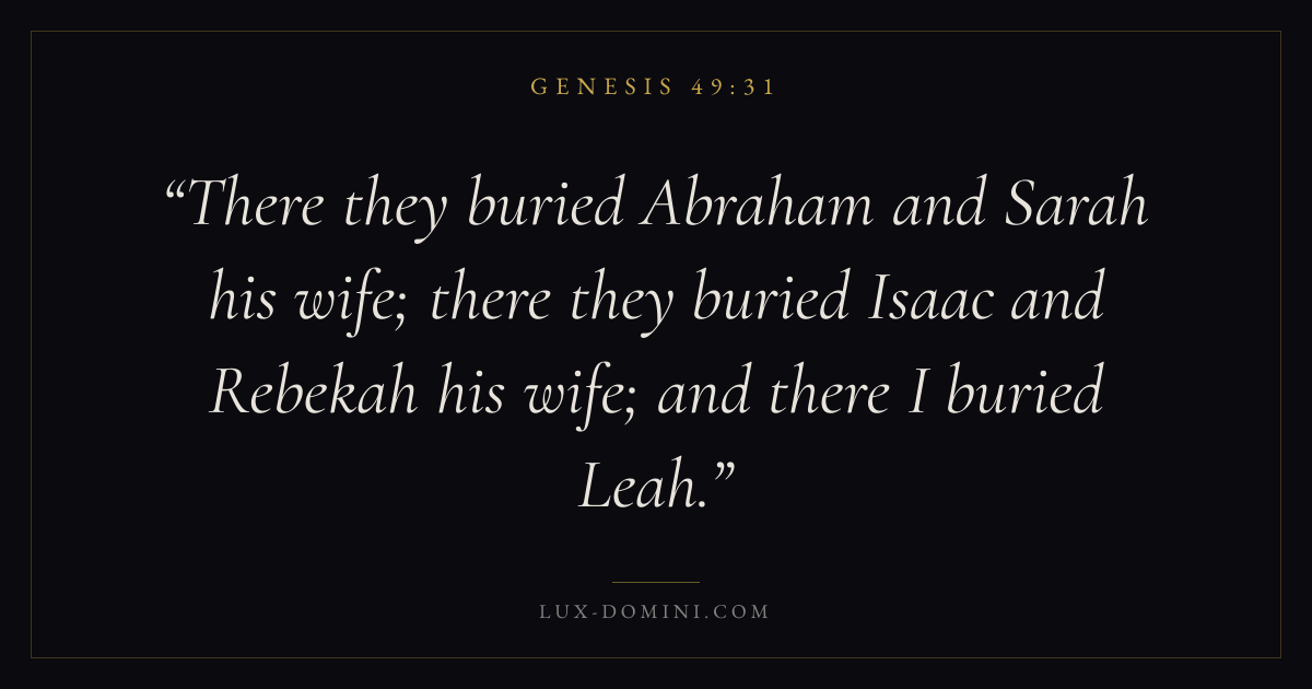 There they buried Abraham and Sarah his wife; there they buried Isaac and Rebekah his wife; and there I buried Leah.