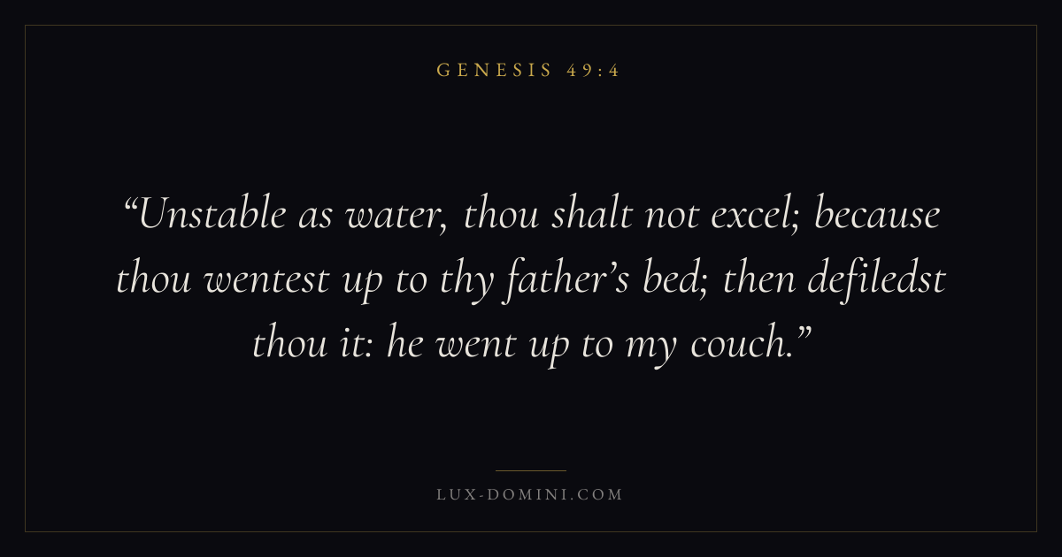 Unstable as water, thou shalt not excel; because thou wentest up to thy father’s bed; then defiledst thou it: he went up to my couch.