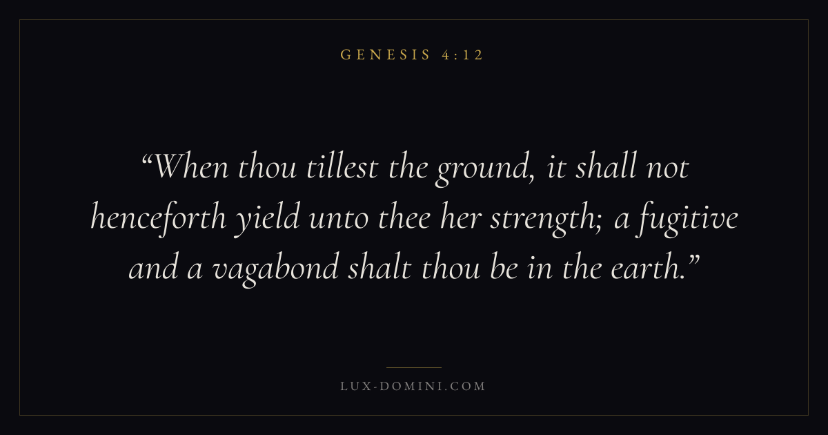 When thou tillest the ground, it shall not henceforth yield unto thee her strength; a fugitive and a vagabond shalt thou be in the earth.