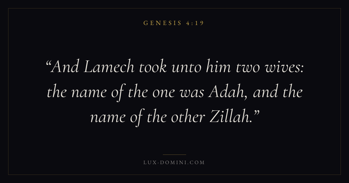 And Lamech took unto him two wives: the name of the one was Adah, and the name of the other Zillah.