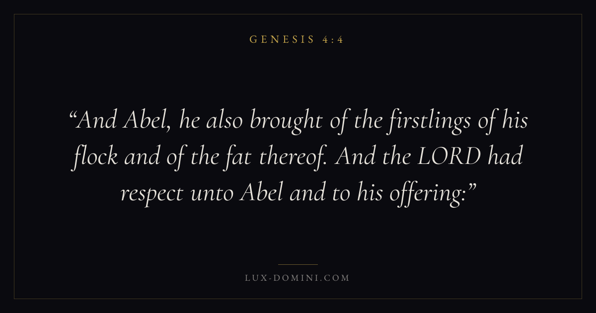 And Abel, he also brought of the firstlings of his flock and of the fat thereof. And the LORD had respect unto Abel and to his offering: