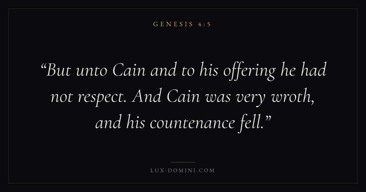 But unto Cain and to his offering he had not respect. And Cain was very wroth, and his countenance fell.