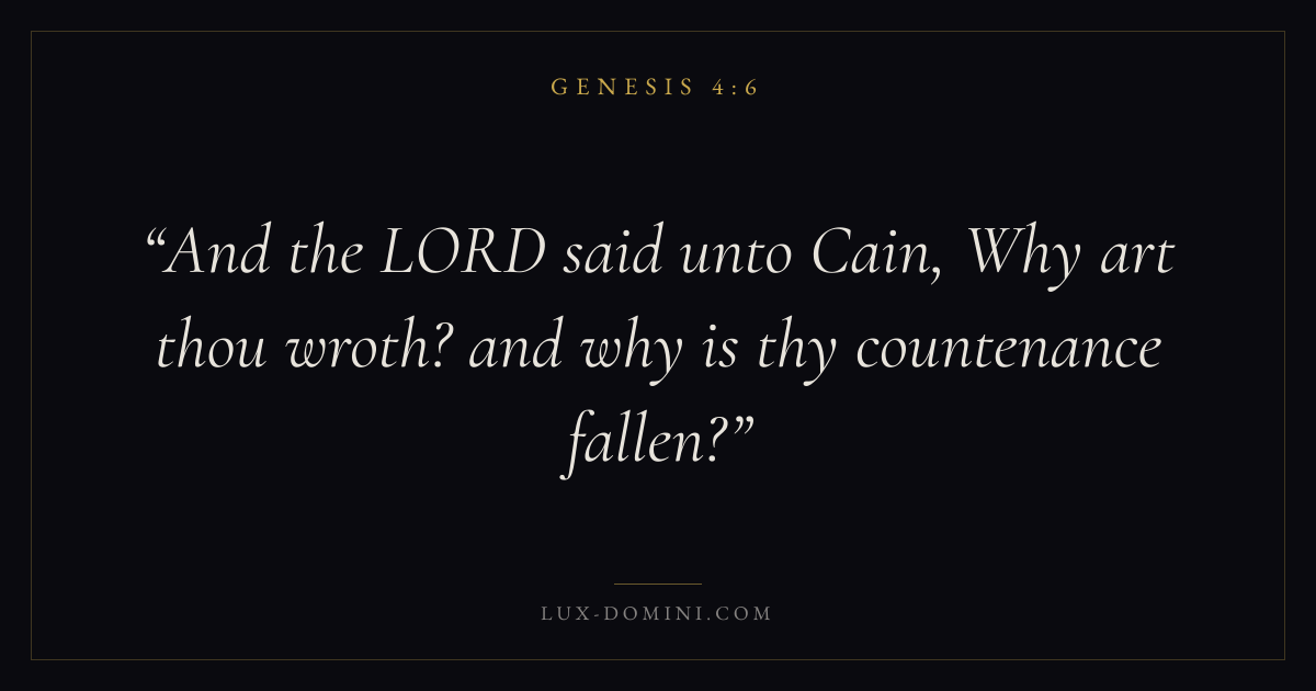 And the LORD said unto Cain, Why art thou wroth? and why is thy countenance fallen?