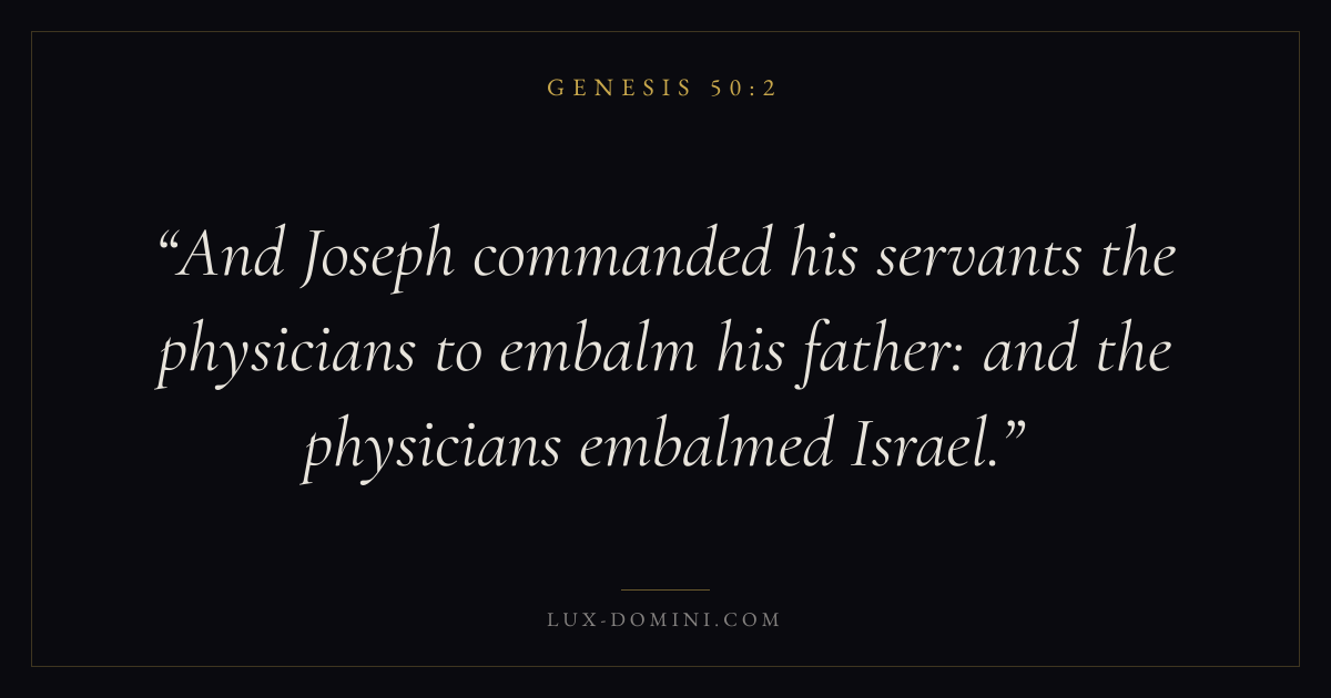 And Joseph commanded his servants the physicians to embalm his father: and the physicians embalmed Israel.