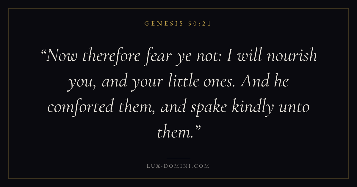 Now therefore fear ye not: I will nourish you, and your little ones. And he comforted them, and spake kindly unto them.