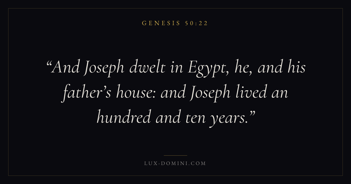 And Joseph dwelt in Egypt, he, and his father’s house: and Joseph lived an hundred and ten years.