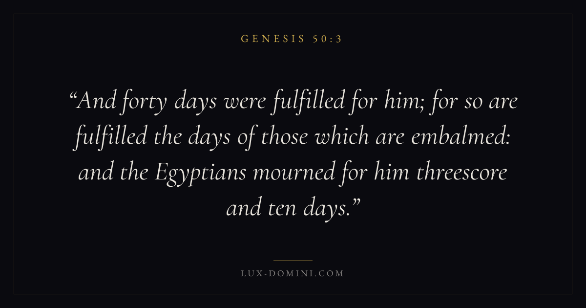 And forty days were fulfilled for him; for so are fulfilled the days of those which are embalmed: and the Egyptians mourned for him threescore and ten days.