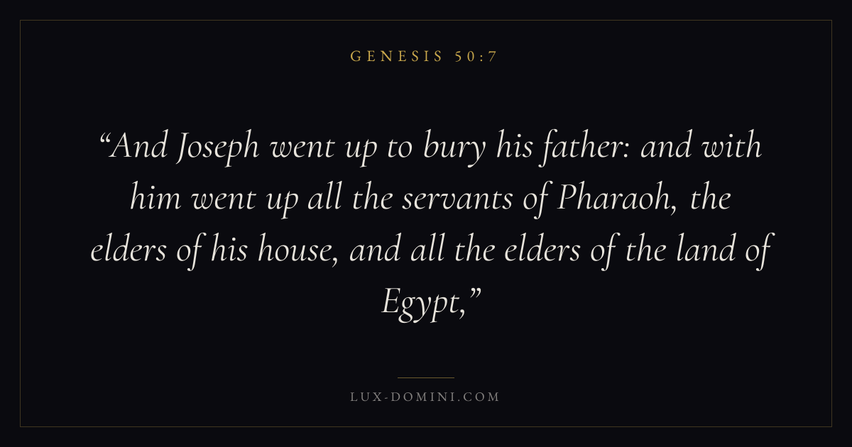 And Joseph went up to bury his father: and with him went up all the servants of Pharaoh, the elders of his house, and all the elders of the land of Egypt,